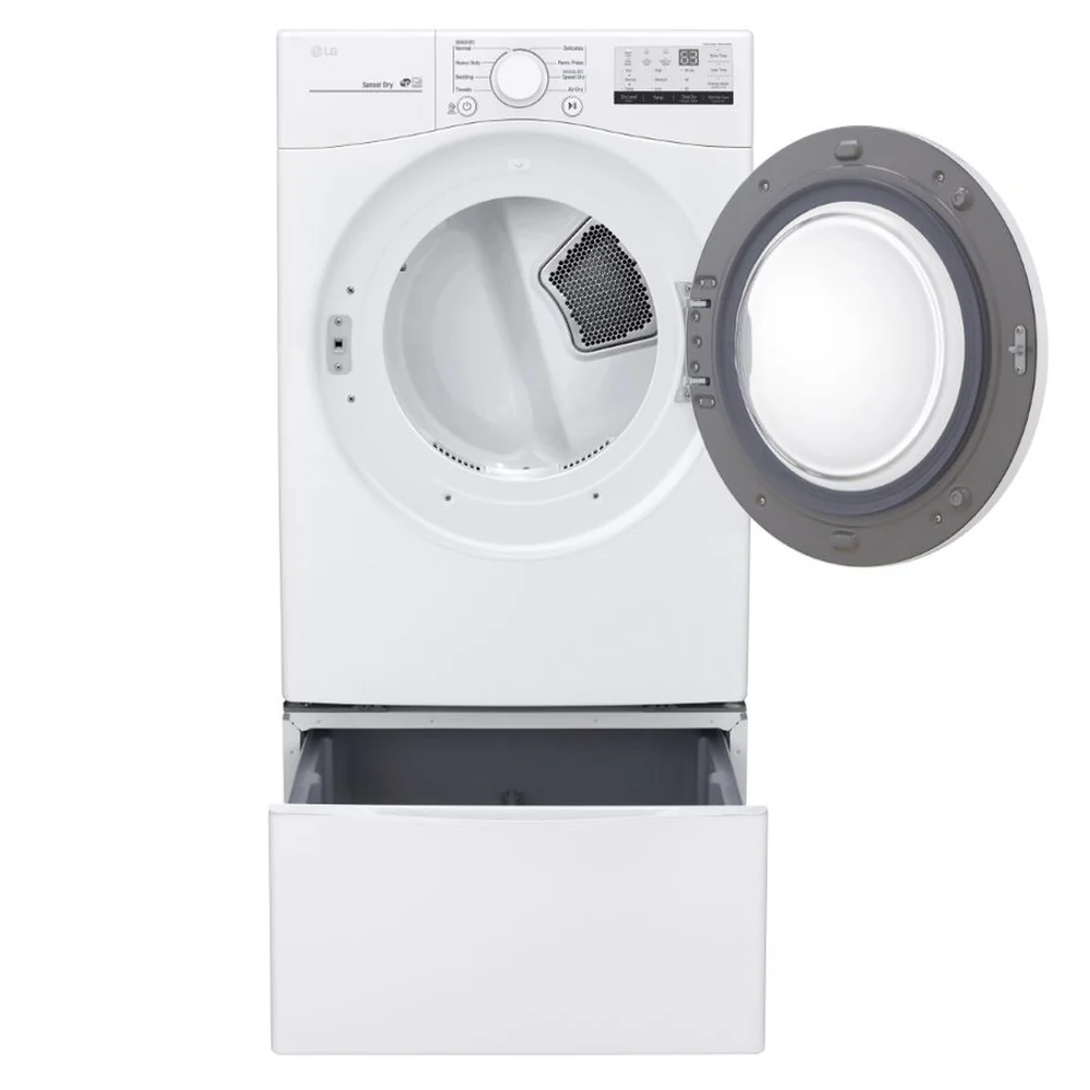 The LG DLE3400W 7.4 cu. ft. Electric Dryer with Sensor Dry - White, ENERGY STAR certified is designed to revolutionize your laundry experience. With its advanced Sensor Dry technology, you'll never have to worry about retrieving damp clothes from the dryer again. This intelligent feature detects moisture levels and adjusts the drying time accordingly, ensuring thorough dryness for every load while saving energy and extending the lifespan of your garments. The ultra-large capacity of 7.4 cu. ft. allows for larger loads, making it perfect for families or those who prefer to do laundry less frequently. Additionally, the FlowSense Duct Clogging Indicator ensures your dryer operates efficiently by alerting you when it's time to clean the ducts, reducing the risk of lint buildup and promoting safer, more effective drying. Enjoy a more efficient and worry-free laundry day with the LG DLE3400W Electric Dryer. Product Highlights Advanced Sensor Dry technology for optimal drying performance. 7.4 cu. ft. ultra-large capacity accommodates more clothing in each load. ENERGY STAR certified for energy efficiency and lower utility bills. FlowSense Duct Clogging Indicator for improved dryer performance. Multiple drying cycles to cater to various fabric types and drying needs.